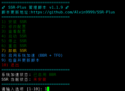 输入数字 1 安装SSR。