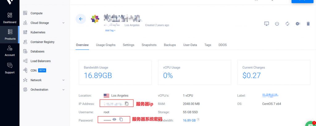 完成购买后,找到系统的密码记下来,部署服务器时需要用到。vps系统的密码获取方法如下图: